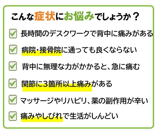 生活で痛みに悩まされている方は原因が意外なところに隠れていることもあるので、一度診てもらうことをお勧めします。