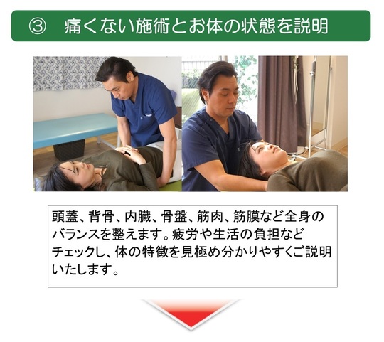 施術は全く痛くなく、とても優しい施術なのに体の硬いところが緩んでいくのがわかりました。強いマッサージが苦手な私にはありがたかったです。