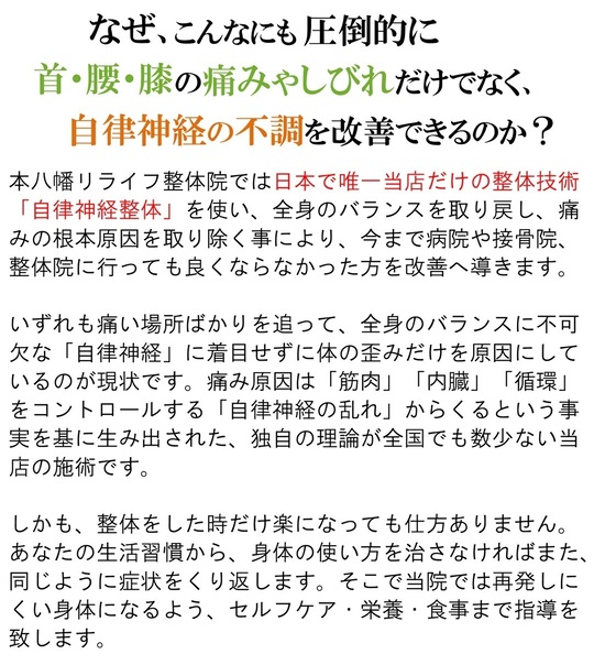 本八幡の整体院|痛みと自律神経の専門家|頭痛、肩こり、腰痛、坐骨神経痛、